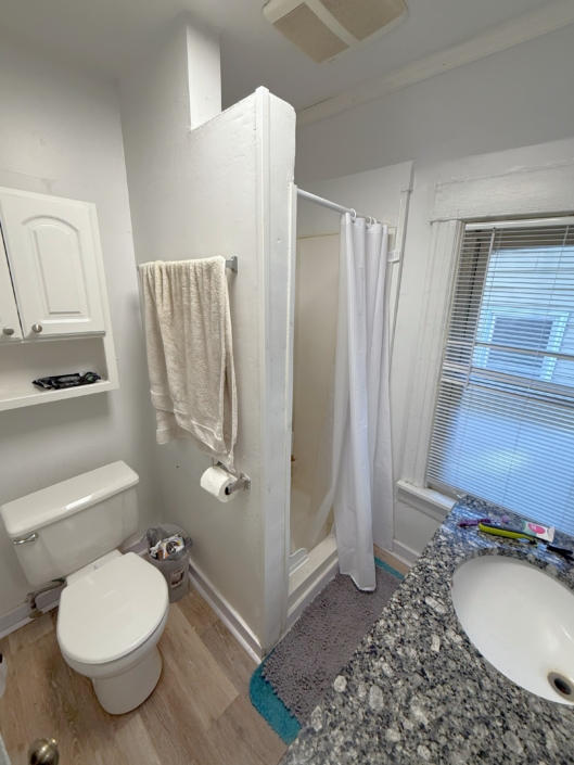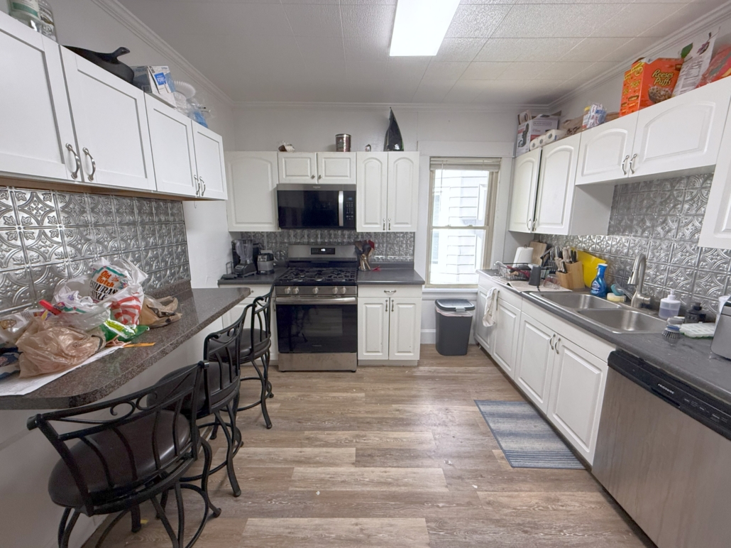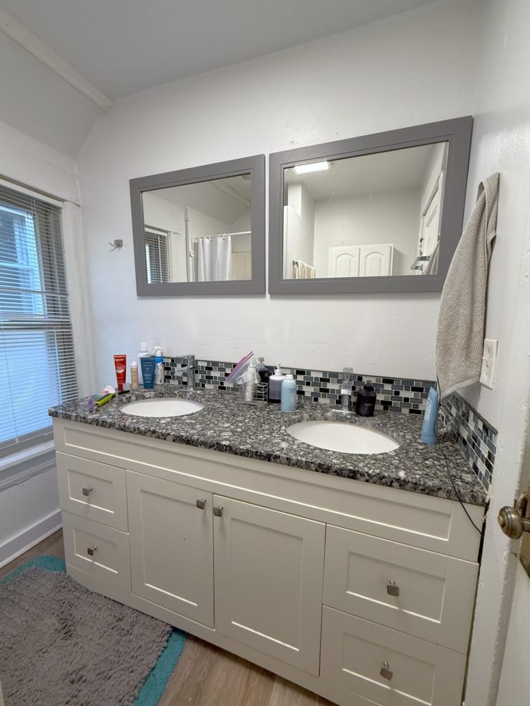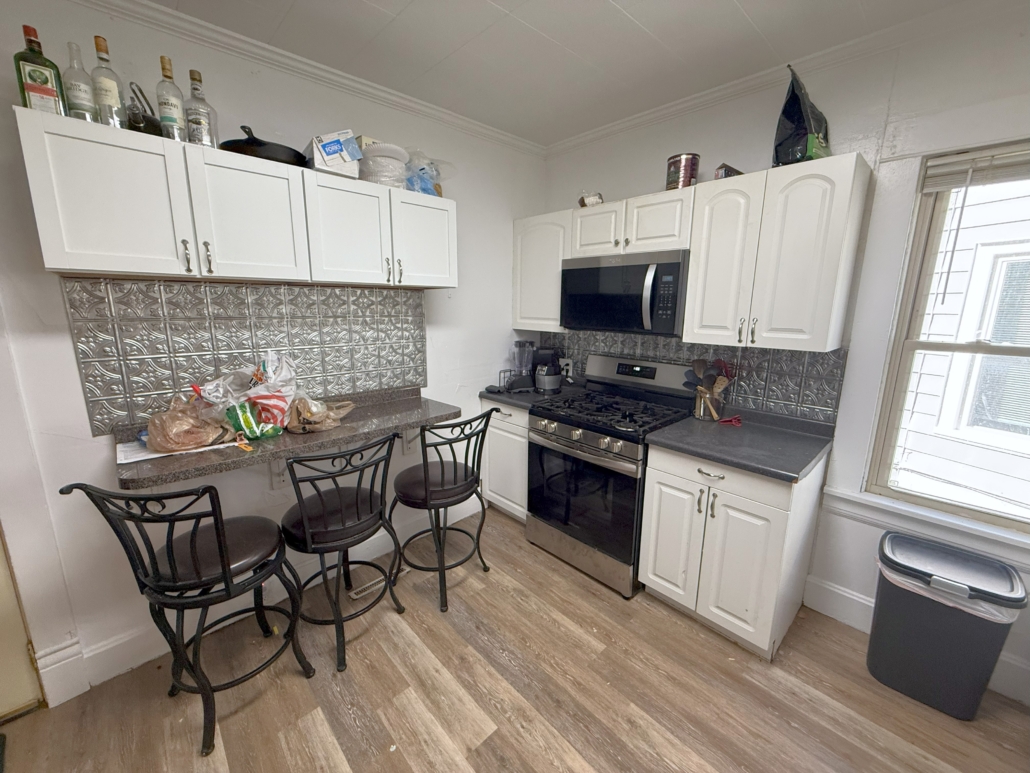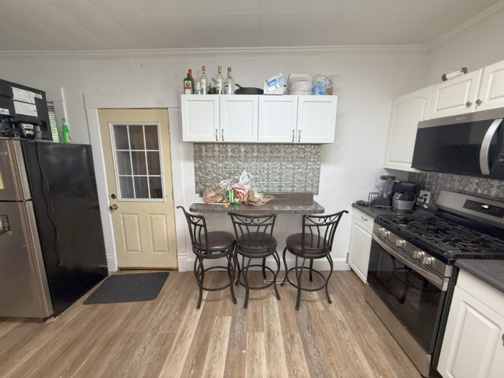 Amenities include a large Kitchen with a Breakfast Bar, dishwasher and above stove microwave, 2 full Bathrooms with a double sink granite counter-top vanity in the 2nd floor Bathroom, Central AC, front porch, hardwood floors. Some bedrooms are big enough to share. Large basement for extra storage and attic.
