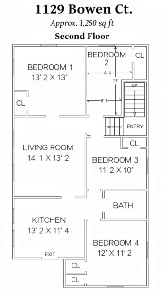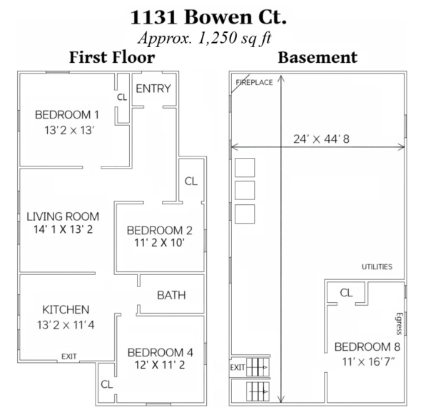 1129/1131 Bowen Court is a large 8 bedroom house with plenty of space for up to 10 people. Just a few blocks from Central Campus, overlooking Edward Klief Park with sand volleyball and a basketball court.