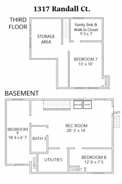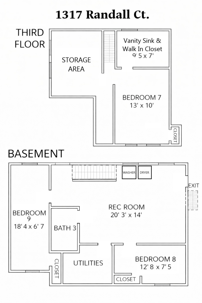 Features include 3 full Baths with an extra sink vanity on the 3rd floor, 3 fridges, dishwasher, above-stove microwave, sealed butcher block countertops, hardwood floors, original woodwork, decorative fireplace, separate Living & Dining Rooms, and a great Basement Rec Room.