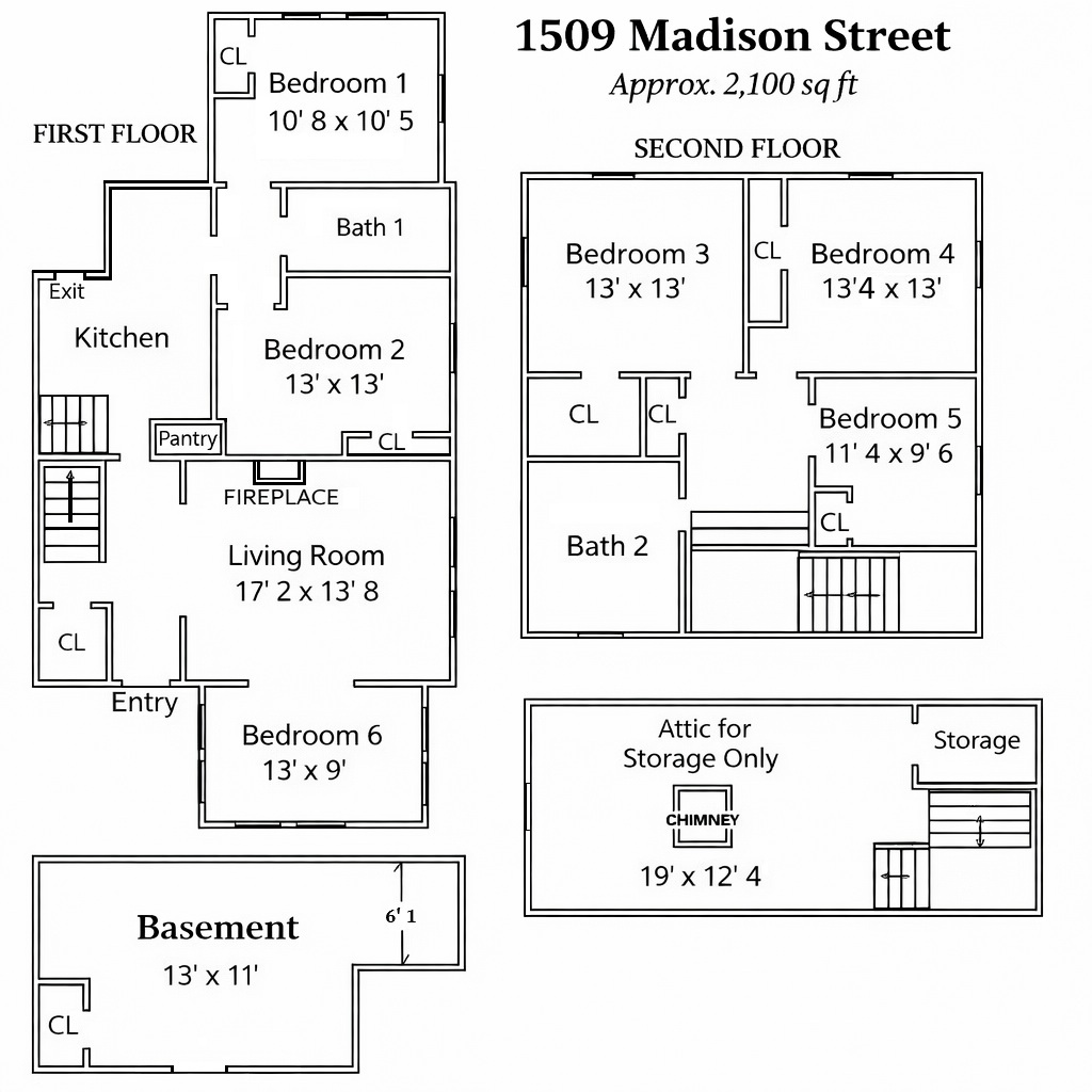 - 6 Bedrooms + and 2 & 1/2 Bathrooms