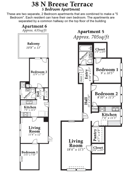 Nice 5 bedroom apartment with a great balcony off the rear of apartment #6. Located directly across from Camp Randall Football Stadium near Engineering Campus.