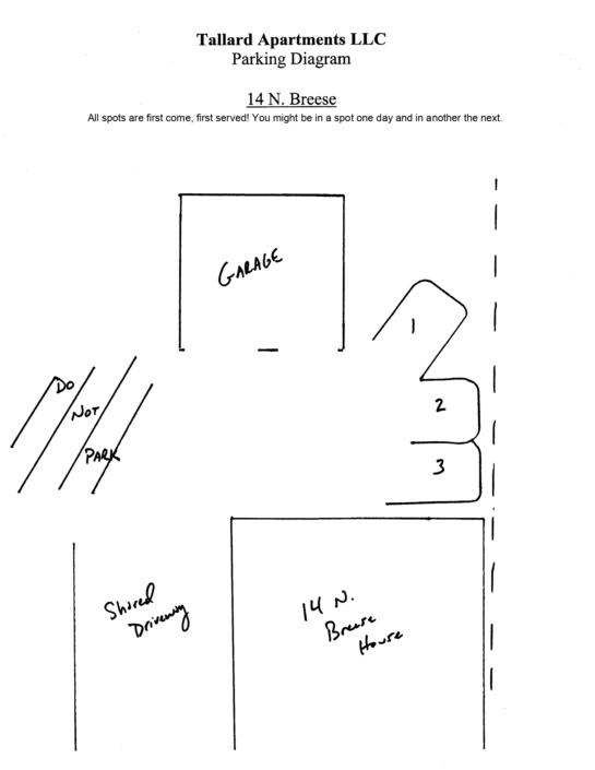 FREE On-Site Laundry! ONE Parking space INCLUDED in rent, behind 14 N. Breese!