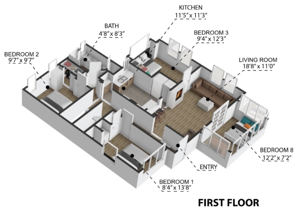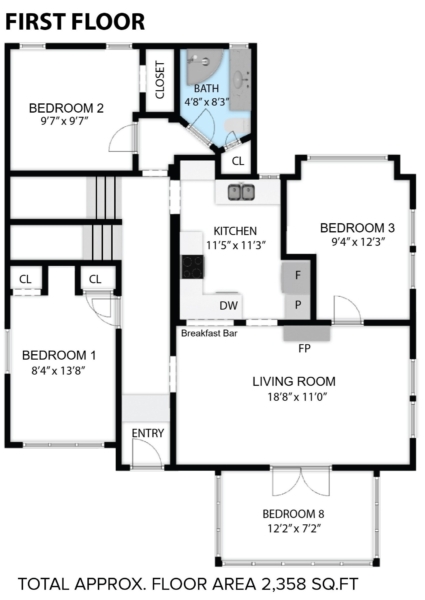 - 9 Bedrooms and 3 Full Baths