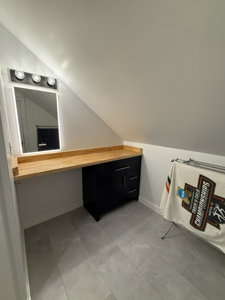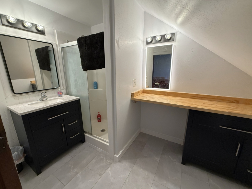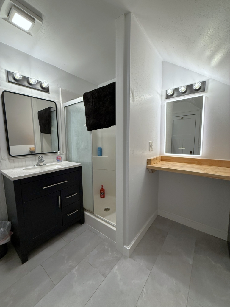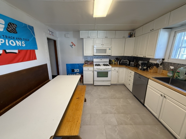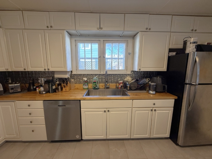 This house comes with a large eat-in Kitchen with a ton of cabinet space, sealed butcherblock countertops, dishwasher and an above-stove microwave.
